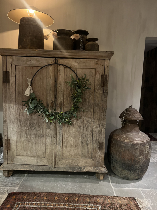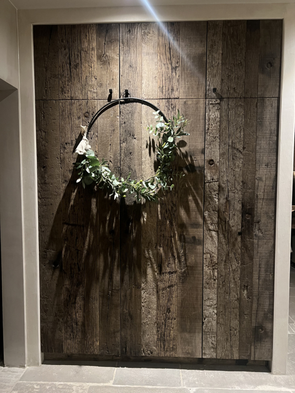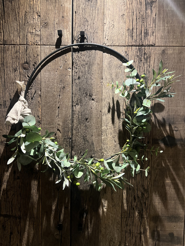 Deze krans van kunstplanten blijft voor altijd mooi.